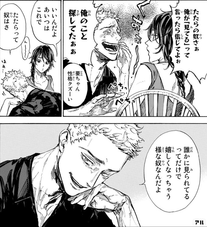 たたらの奴さぁ俺が 見てる って言ったら信じてよぉ 俺のこと探してたぁぁ 要ちゃん性格クズーい いいんだよ あいつはこれで たたらって奴はさ 誰かに見られてるってだけで嬉しくなっちゃう様な奴なんだよ ボールルームへようこそ アル